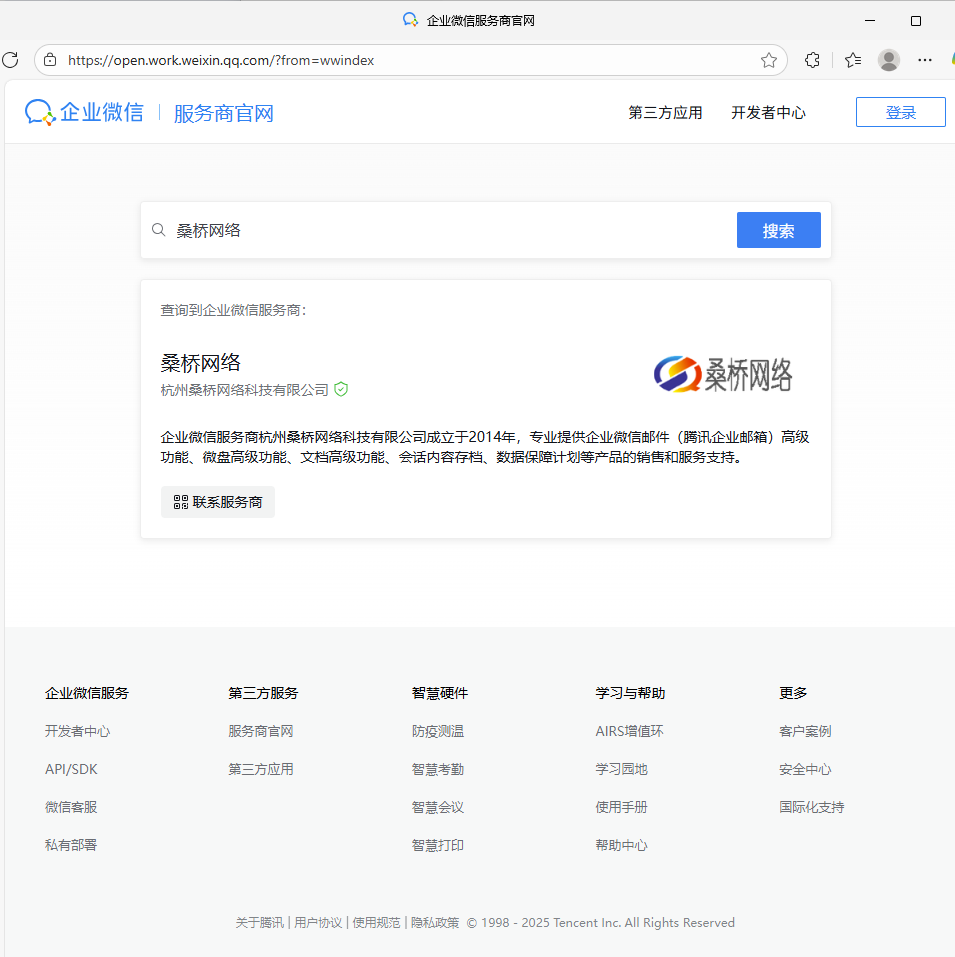 腾讯企业微信服务商官网实时查询网址:https://open.work.weixin.qq.com/?from=wwindex