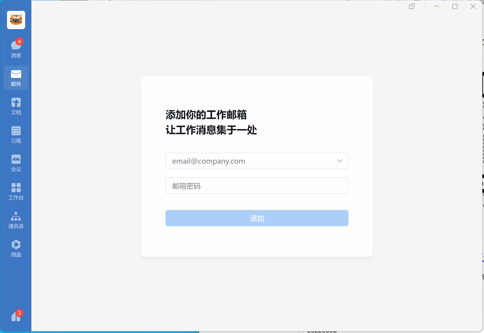 ③升级前未在工作台-企业邮箱中绑定的邮箱,员工通过新的邮件入口进入后,会默认进入输入账号密码界面,员工可以输入账号密码登录常用企业邮箱。
