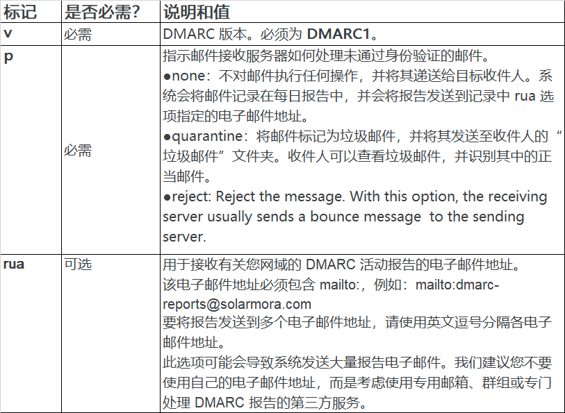 注:如不需要记录中rua,那么记录值为v=DMARC1; p=none;
