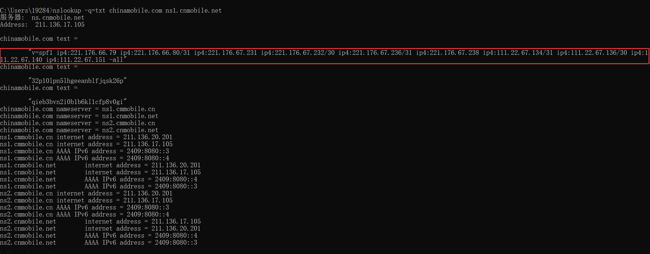 附:统一邮件在权威DNS上记录的SPF信息对应的IP地址