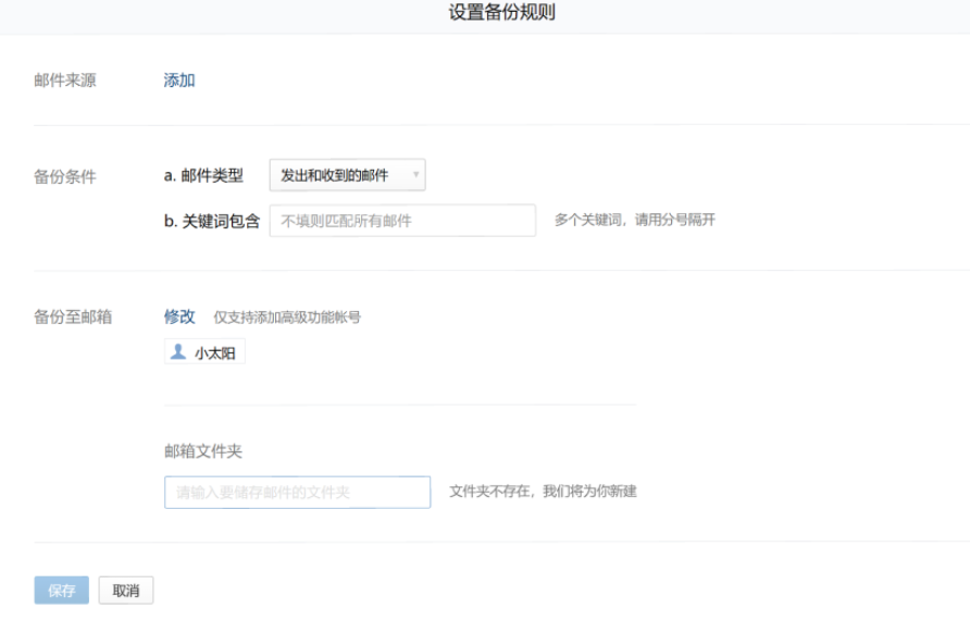 将员工邮件复制副本至指定邮件,实现邮件备份,操作路径:增值服务-邮件备份。