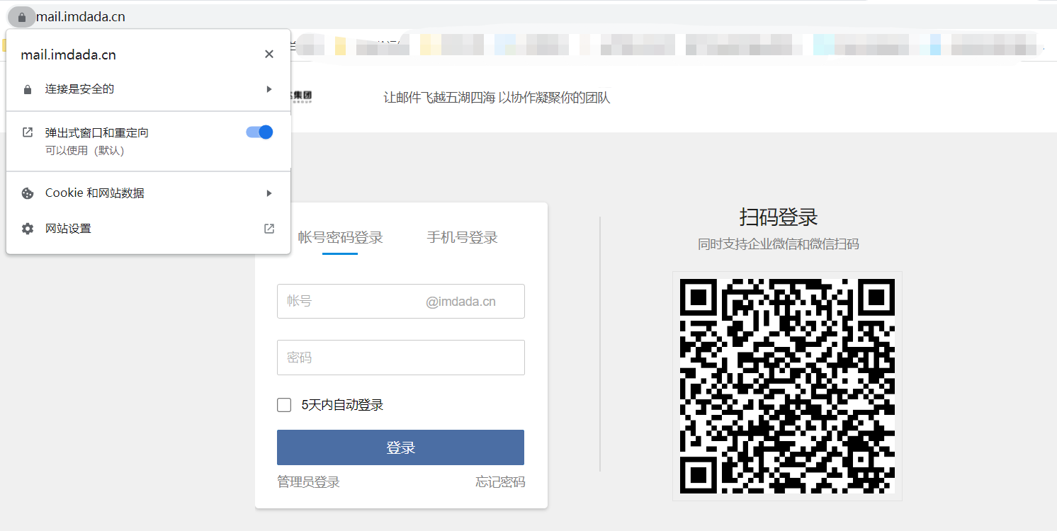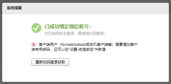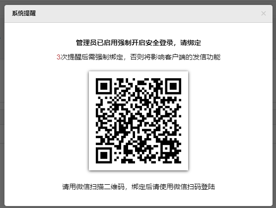 启用后,成员登录网页邮箱将自动弹窗提示绑定微信并开启安全登录。如下图: