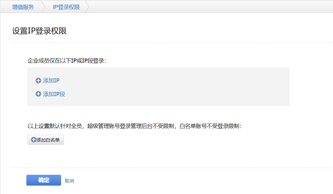 配置IP或IP段后,用户仅可以在指定的IP或IP段网络使用企业邮箱,支持添加例外帐号不受影响。操作路径:企业邮箱管理员后台增值服务-IP登录权限。