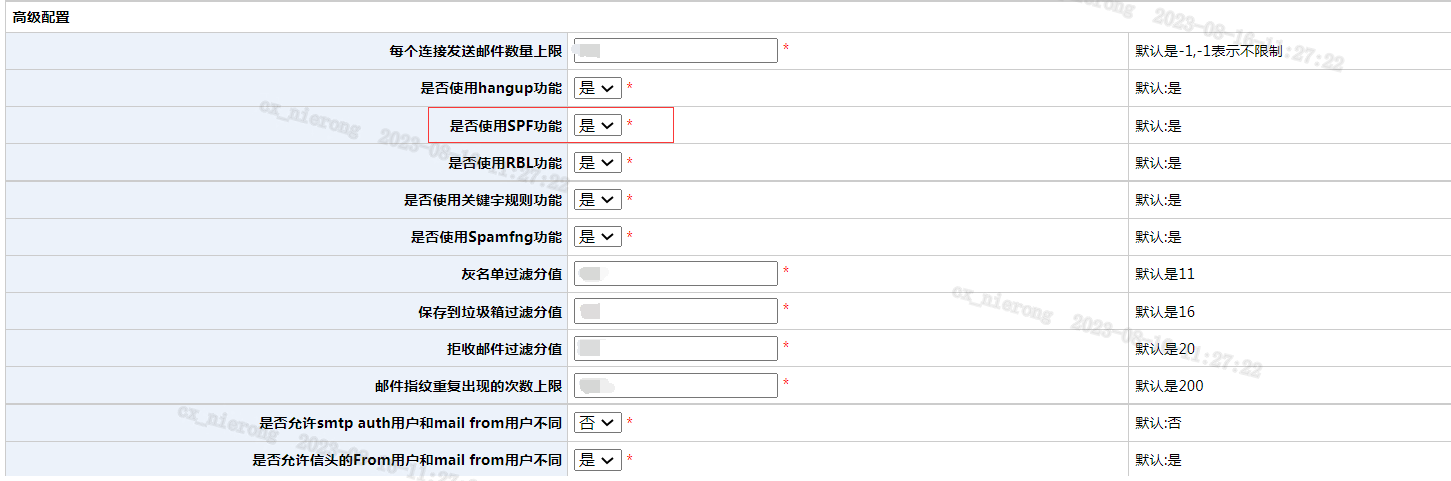 邮件系统一般都有SPF验证机制,只需在系统中开启SPF功能开关即可,例如: