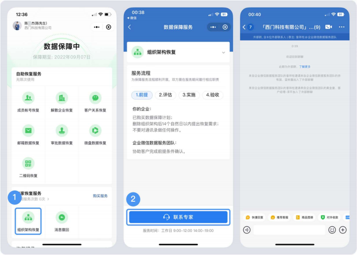 . 需购买专家恢复服务由企业微信团队数据专家人工支持